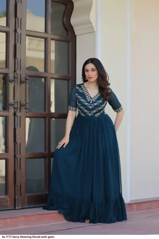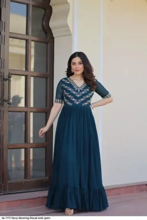 FABRIC & WORK :- Faux Blooming With Sequins Multithreaded Beads Embroidered work.